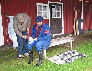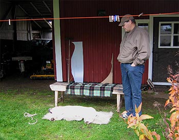 syksyinen päivä, Palolahti haki saunasta penkin ja lampaantaljan ja