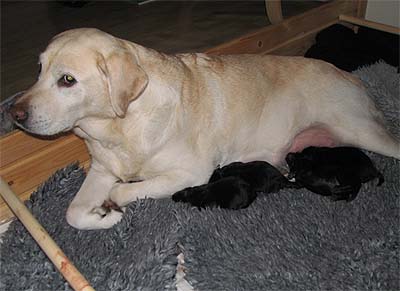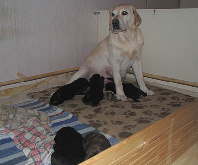 vatsanympäryksessä...! Tintti viihtyy hyvin pentujensa kanssa