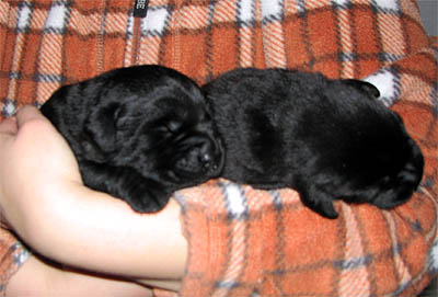 emän lailla hoivannut pentujaan. Pennut painavat nyt 12 vrk ikäisinä
