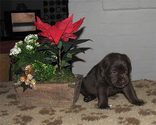 joulurauha! Ainakin hetkeksi. Pennut täyttivät perjantaina 4 vkoa ja meno
