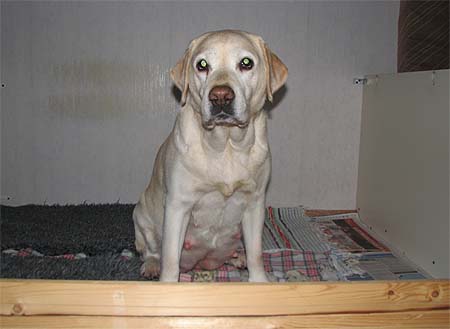 keittiö. Kummasti se keittiö vetää puoleensa noin pieniäkin labradoreja...