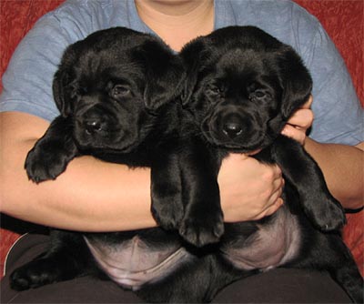 ruskea uros 40 kg ja musta uros 5 kg, kummallakin etupää maassa ja