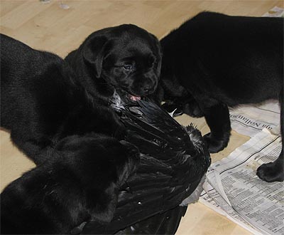 riistan lisäksi dummyyn, eikä mitään ongelmia ole ollut. Pennut ovat
