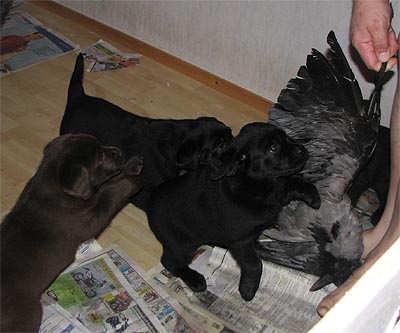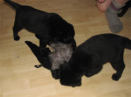kautta noutoharjoitukset, aluksi tennispallolla. Pennut ovat meillä vielä