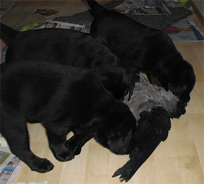 kaikki portit auki... Pentujen iltapäiväruoka siirtyi sujuvasti