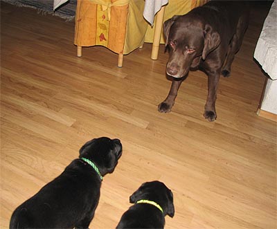 oli kuitenkin, että koirien ruoka-aikaan Tavi tapitti tiukasti rivissä