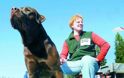 Velmu esiintyi reippaasti aina siihen asti, kunnes tuomari lähestyi koiraa. Velmu pakeni outoa miestä ja lähentyviä käsiä omistajansa jalkojen väliin.