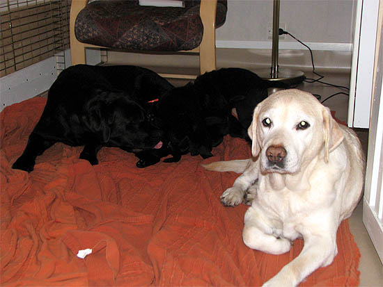 tutkimusmatkalle muualle taloon -uteliaita ne pienetkin labradorit ovat!